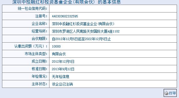 發(fā)行1億元專(zhuān)項(xiàng)基金, 深圳中投融紅杉投資基金企業(yè)(有限合伙),投資建立紅豆杉產(chǎn)業(yè)基地,期限為一年。